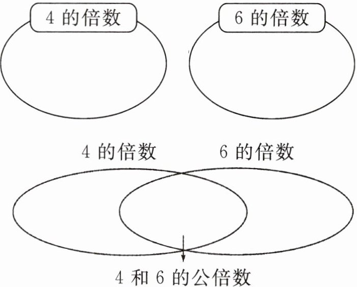 一 把4和6的倍数、公倍数填在相应的位置,再找出它们的最小公倍数。