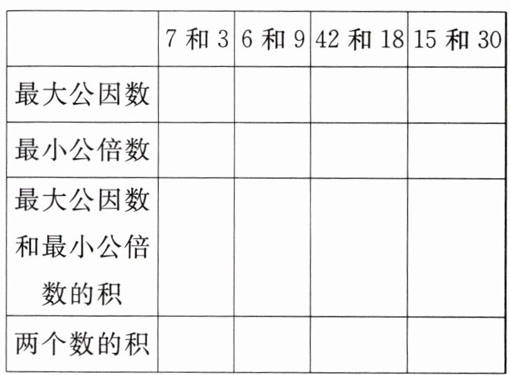 我发现:两个数的最大公因数和最小公倍数的积( )这两个数的积。