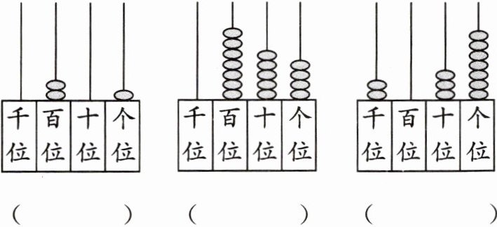 一 写出下面各计数器上的数,数一数分别用了多少个珠子,再填一填。