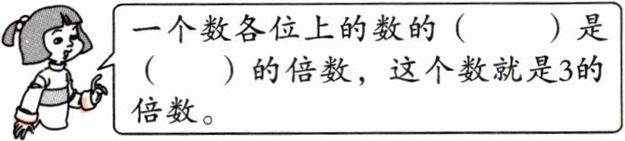 一个数各位上的数的( )是( )的倍数, 这个数就是3的倍数。