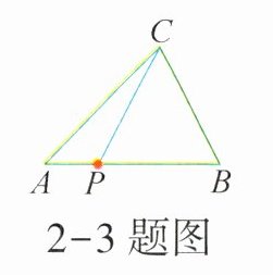 2-3 如图,已知P是三角形ABC的边AB上一个动点,AB = 6,三角形ABC的面积为12,则CP的最小值为________。