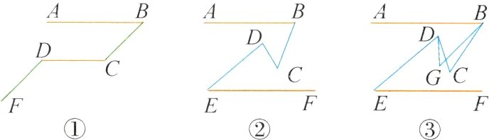 (3)再拿出另外一根铁丝弯折成∠G,与图②中的铁丝叠放成如图③所示的形状。若∠ABC = 3∠GBC,∠CDE = 3∠CDG,AB//EF,且∠C = 52°,∠E = 40°,求∠G的度数。