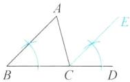 7-2 如图,在三角形ABC中,∠A = 60°,∠B = 45°,延长BC至点D。
