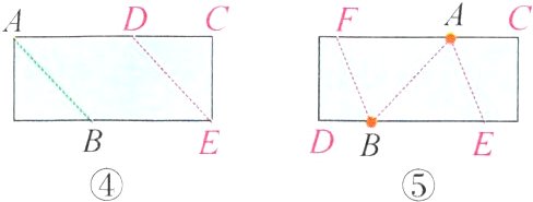 (2)如图⑤,如果长方形纸片两条边上分别有点A,B,你能分别过点A,B折两条互相平行的折痕吗?