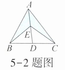 5 - 1 ★★☆ 如图,在△ABC中,E是中线AD的中点。若△ACE的面积是1,则△ABD的面积是________。