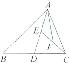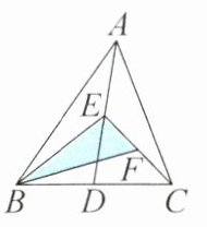 5 - 3 ★★☆ 如图,在△ABC中,D,E,F分别为BC,AD,CE的中点。若S△ABC = 8 cm²,则△AEF的面积是________cm²。