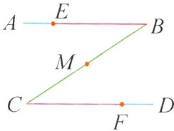 9 - 2 ★★☆如图,公园有一条“Z”字形道路,其中AB//CD,在点E,M,F三处各有一个小石凳,且BE = CF,M为BC的中点,则三个小石凳是否在一条直线上?请说明理由。