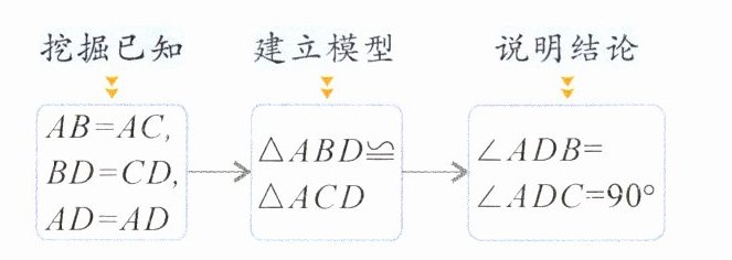 所以∠ADB = ∠ADC = 90°。→两个等角的和等于180°,则每个角都等于90°。