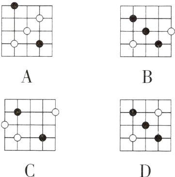 1-4〔传统文化·围棋〕〔成都天府新区期末〕围棋起源于中国,古代称之为“弈”,至今已有四千多年的历史。下列由黑、白棋子摆成的图案中,构成轴对称图形的是( )