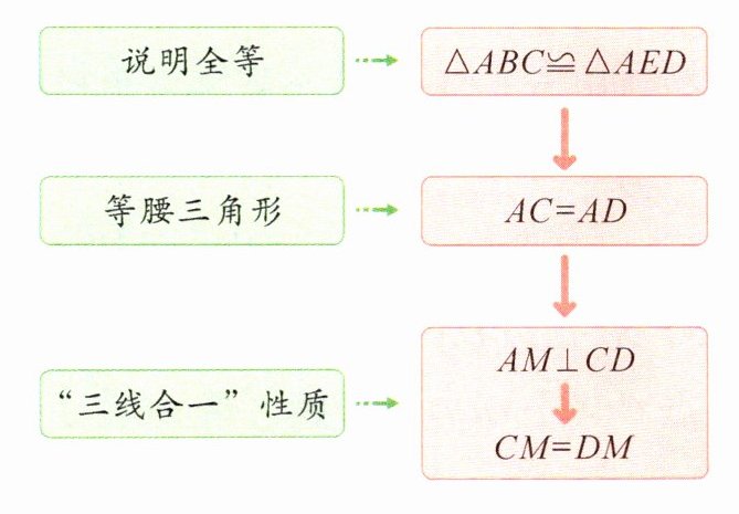 例4 如图,AB=AE,BC=DE,∠B=∠E,AM⊥CD,垂足为M。试说明:CM=DM。
