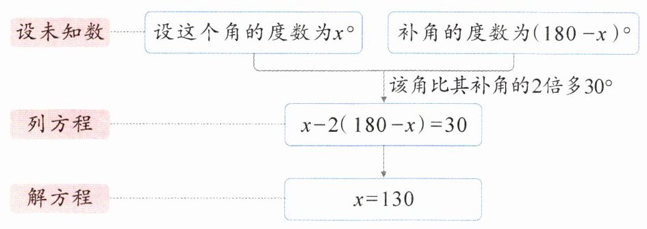 例3 [自贡中考]如果一个角的度数比它补角的2倍多30°,那么这个角的度数是( )