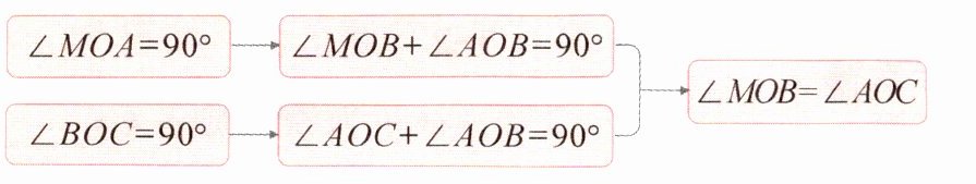 所以∠MOB + ∠AOB = 90°,∠AOC + ∠AOB = 90°。
