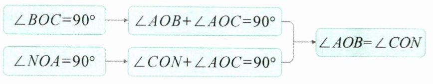 所以∠AOB + ∠AOC = 90°,∠CON + ∠AOC = 90°。