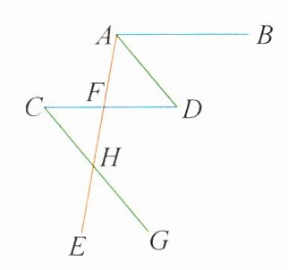 因为∠DAE = ∠C,所以∠D = ∠C,所以AD//CG,