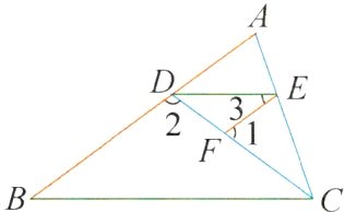 所以∠3 = ∠ADE(______)。因为∠3 = ∠B,所以∠B =______,