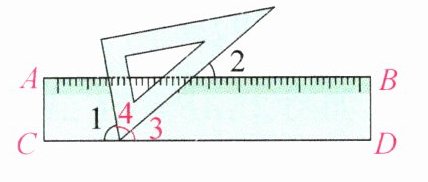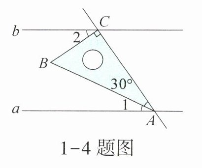 1 - 4 将一块含30°角的直角三角尺按如图所示的方式放置,顶点A,C分别落在直线a,b上。若直线a//b,∠1 = 25°,则∠2的度数是________。