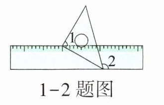 1 - 2 如图,将一块含45°角的直角三角尺的直角顶点和一个锐角顶点分别放在一把直尺的两条边上,若∠1 = 60°,则∠2的度数为( )