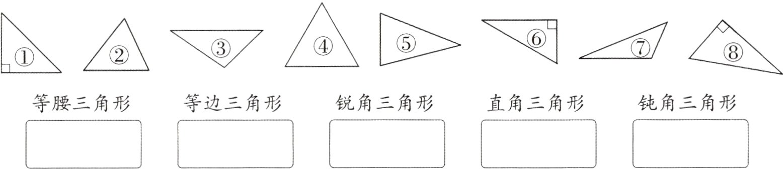 (2)下面四幅图中的三角形都被长方形纸板遮住了一部分,一定是锐角三角形的是( )。