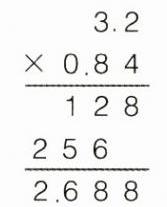 解析:按整数“铺地锦”的计算方法算出结果,然后根据乘数的小数位数之和在积上点上小数点即可。