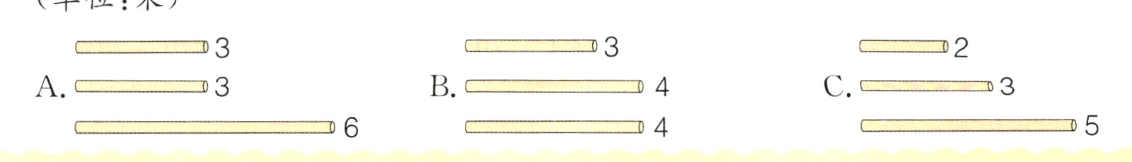 3. [广东省惠州市高新区期末]下面三组小棒能拼成一个三角形的一组是( )。(单位:米)