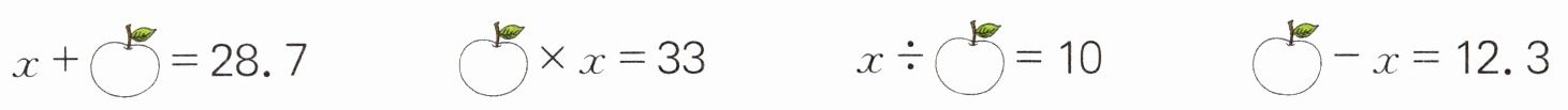 解析:因为每个方程的解都是3,将x = 3代入到每个方程中,再把每个方程中的苹果看作是未知数,求出每个方程中苹果的值,就是每个苹果中应填入的数。