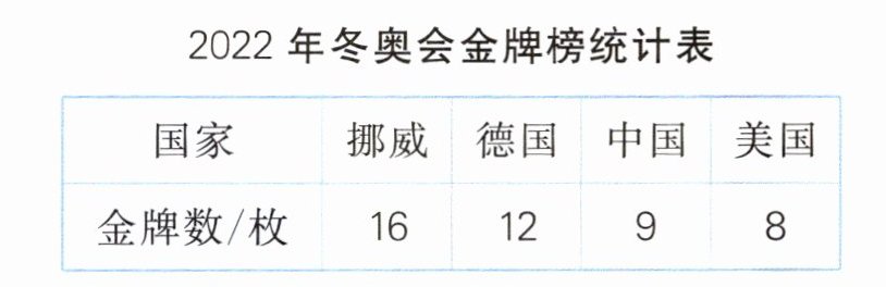 2. [山西省吕梁市汾阳市期末]淘气上网查阅了2022年冬奥会金牌榜情况。