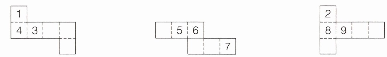 解析:第一个图形中,上面的小正方形和下面的小正方形是相对的,中间的4个小正方形:第一个和第三个相对,第二个和第四个相对;第二个图形中,上面一行的第一个小正方形和第三个相对,下面一行的第一个和第三个相对,剩下的两个小正方形相对;第三个图形中,上面的小正方形和下面的小正方形相对,中间的四个小正方形中:第一个和第三个相对,第二个和第四个相对。据此再根据相对的两个数字之和是12,即可填上合适的数字。