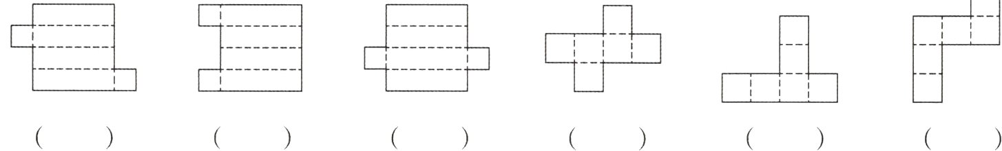 1. 下面哪些图形沿虚线折叠后能围成长方体或正方体?能的画“√”,不能的画“×”。