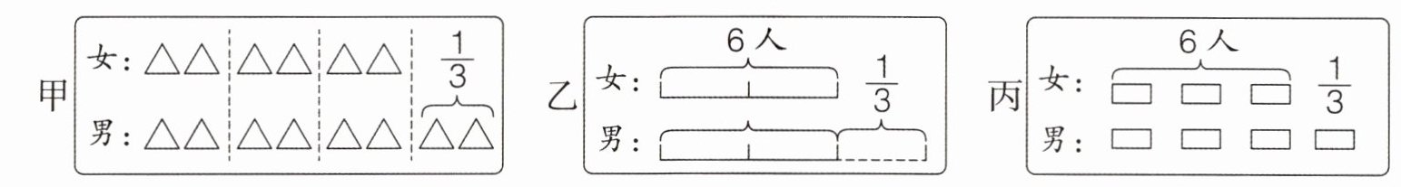 2. 实验学校绘画社团有6名女生,男生比女生多$\frac{1}{3}$。下面能正确表示题中数量关系的是( )。