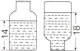 解析:瓶子正放和倒放时上面空的部分的体积相同,从第二个瓶中可以用减法算出空的部分的高度,从第一个瓶子中可以看出油的高度是14cm,综合两个瓶子分析:瓶子的容积=油的体积+空的部分的体积;再根据题意分析得到:油的高度(第一个瓶子)是空的部分(第二个瓶子)高度的2倍,若将空的部分装满油,则再装入油的质量是现在油的一半,列出综合算式进行计算。