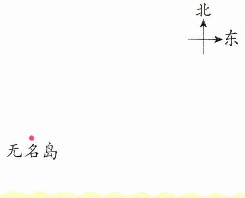 4. 无名岛的北偏东40°方向4km处是飞禽岛,而飞禽岛的南偏东75°方向6km处是考拉岛。在图中标出飞禽岛和考拉岛的位置。(1cm表示2km)
