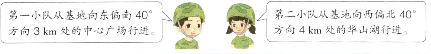 第一小队从基地向东偏南40°方向3 km处的中心广场行进。