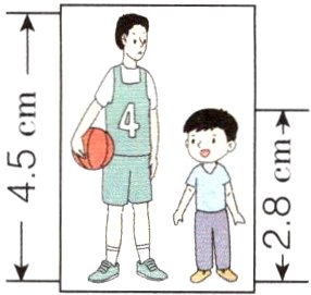 4. 小明和一名职业篮球运动员合影(如图),小明的身高是1.4 m,这名运动员的身高是多少米?