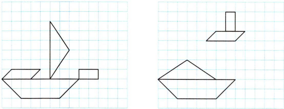 1. 观察方格纸中的图形,回答问题。