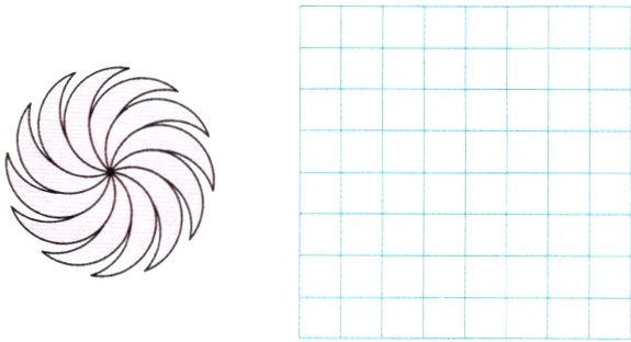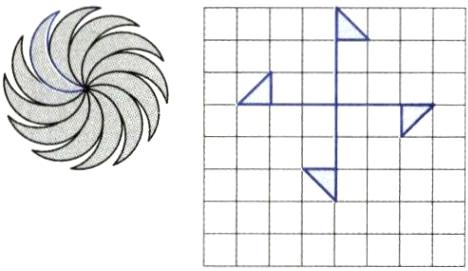 2. 你见过右面的图案吗?只要用简单的图形就可以画出这样美丽的图案。右图是由什么图形旋转而成的?在图中描一描,然后请你在方格纸上设计一个美丽的图案。