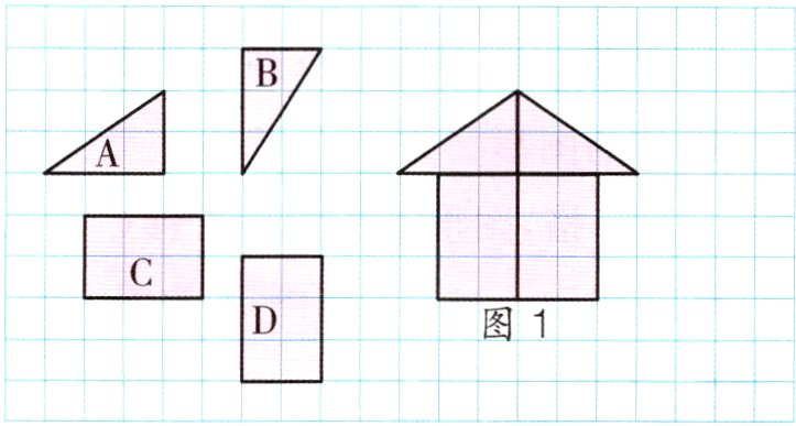 图形A向右平移9格;图形B先向下平移3格,再向右平移7格,然后绕直角顶点逆时针旋转90°;图形C先向右平移6格,然后绕右下角的点顺时针旋转90°;图形D先向上平移2格,再向右平移7格,即可还原成图1。(答案不唯一)