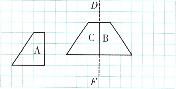 (3)将图形 A 先向右平移 5 格,再画出它以直线 DF 为对称轴的轴对称图形,最后向上平移 1 格。(答案不唯一)