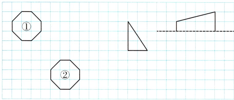 (3)右边是一个等腰梯形的一半,画出它的另一半。(2分)