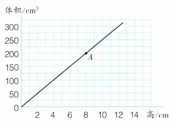 思路分析 (1)(3)由长方体体积公式:$V = Sh$,及图上数据可知,长方体的体积与高成正比例,根据正比例意义解答即可;(2)根据点 A 的横纵坐标表示的意义解题即可。