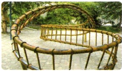 2. 下图是小朋友玩的爬梯,不翻过爬梯边缘,爬梯两侧都能够到达吗?请你试着在图中画一画再回答。