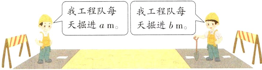 (1)$56(a + b)m$ (2)$56 \times (38 + 33) = 3976(m)$ 解析:(1)隧道的全长即两个工程队的工作总量之和,即$56(a + b)m$。(2)将$a = 38$,$b = 33$代入$56(a + b)$计算即可。