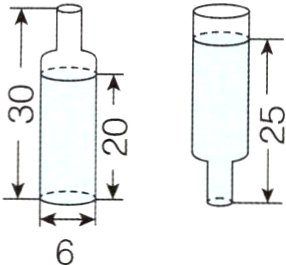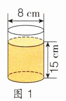解析:根据图得出饮料瓶的容积就是左边饮料的体积加上右边空余部分的体积,所以饮料瓶的容积是高为30 - 25 + 20 = 25(cm),底面直径为6 cm的圆柱的体积。
