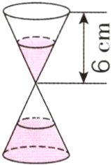 3. 下面的沙漏是两个完全相同的圆锥形容器的组合体,单个圆锥形容器高6cm,漏口每秒可漏细沙0.05cm³,漏完全部细沙用时5分,这个沙漏的底面积是多少平方厘米?