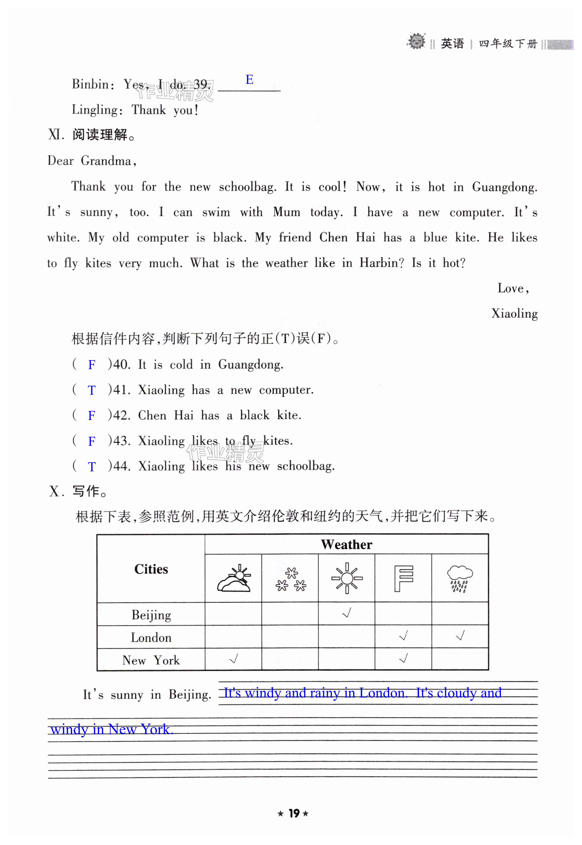 注:目前有些书本章节名称可能整理的还不是很完善,但都是按照顺序排列的,请同学们按照顺序仔细查找。练习册 2025年新课程课堂同步练习册四年级英语下册人教版 答案主要是用来给同学们做完题方便对答案用的,请勿直接抄袭。