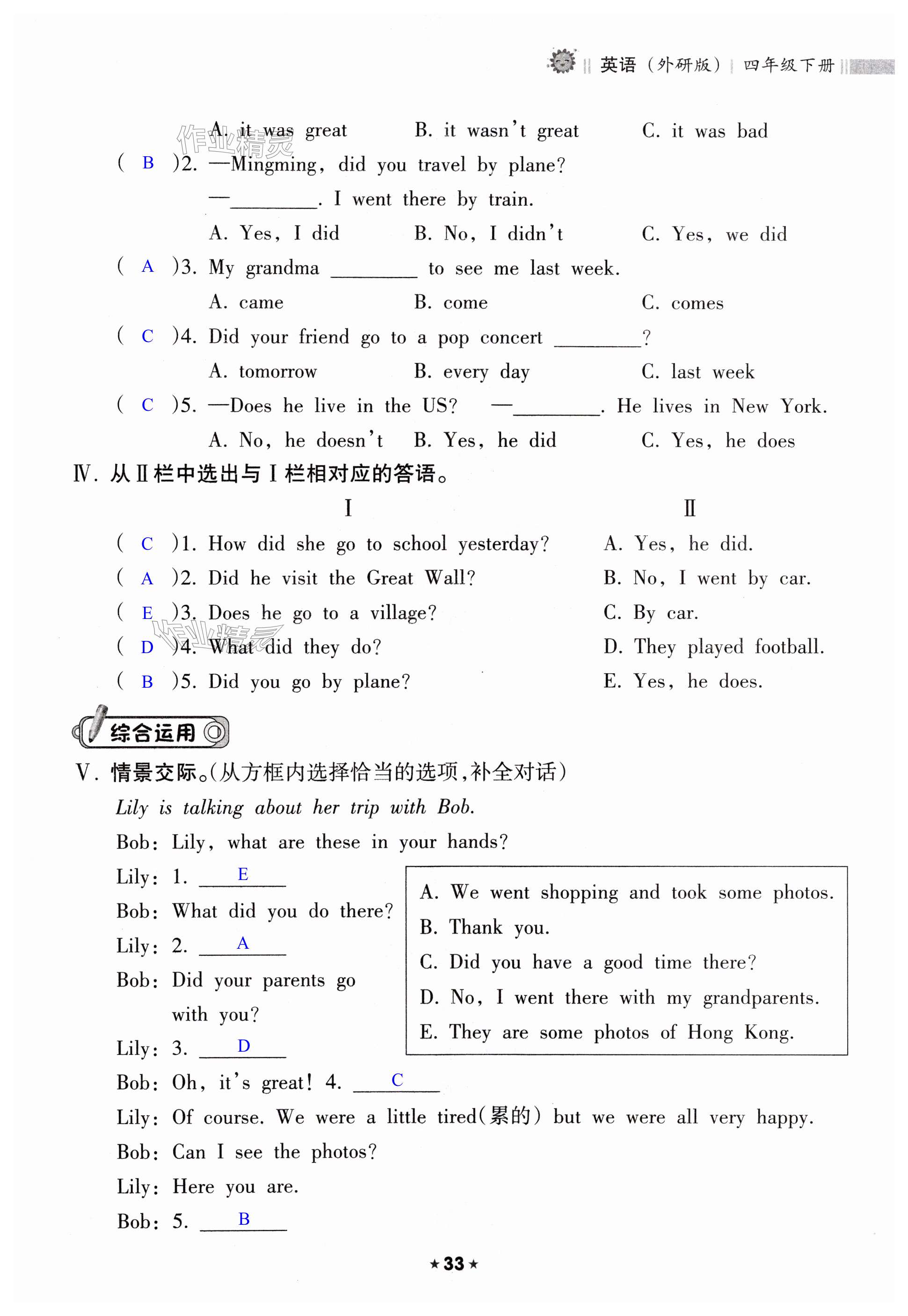 注:目前有些书本章节名称可能整理的还不是很完善,但都是按照顺序排列的,请同学们按照顺序仔细查找。练习册 2025年新课程课堂同步练习册四年级英语下册外研版 答案主要是用来给同学们做完题方便对答案用的,请勿直接抄袭。