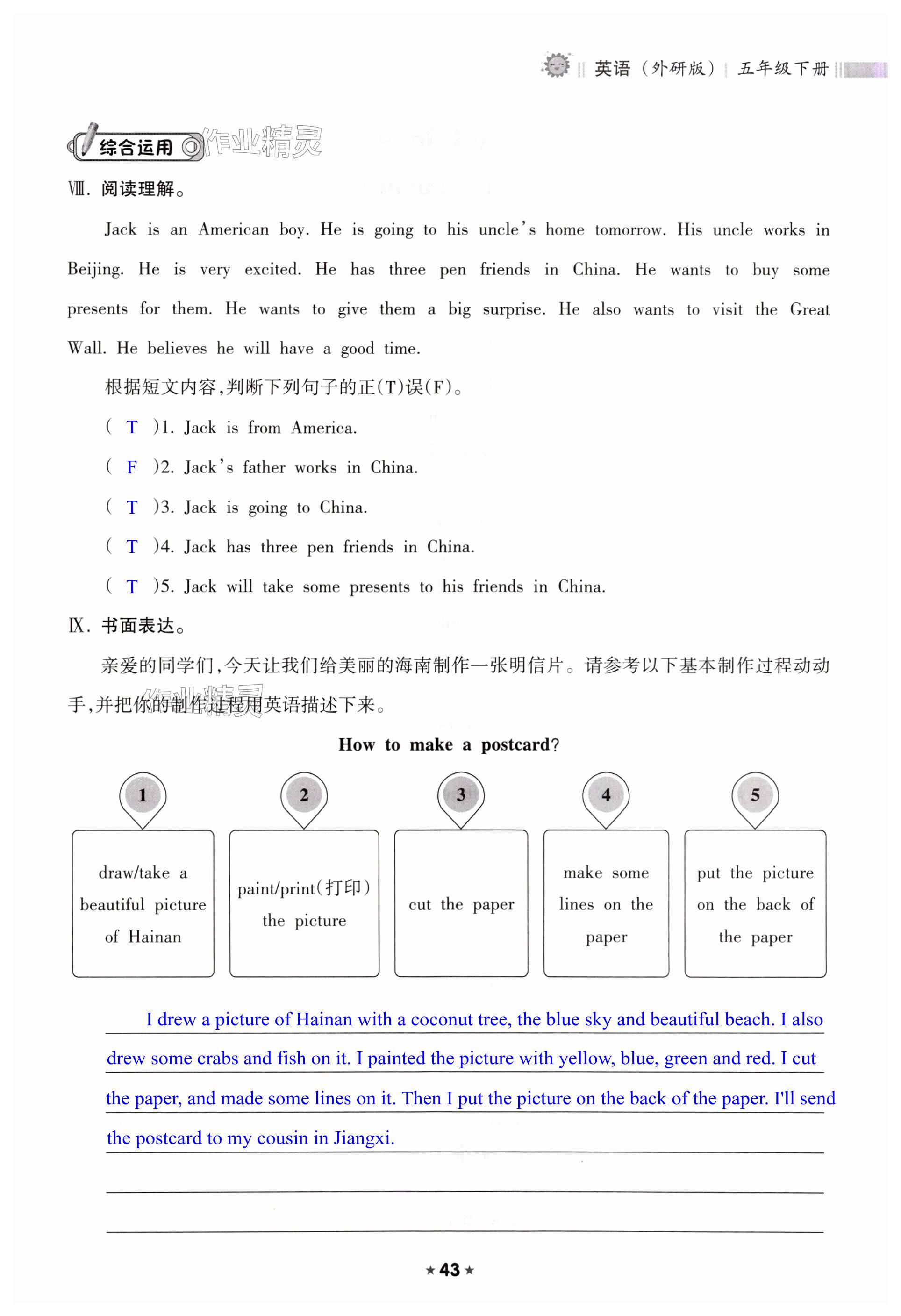 注:目前有些书本章节名称可能整理的还不是很完善,但都是按照顺序排列的,请同学们按照顺序仔细查找。练习册 2025年新课程课堂同步练习册五年级英语下册外研版 答案主要是用来给同学们做完题方便对答案用的,请勿直接抄袭。