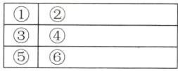 (1)题:如图,标上序号。单个的图形有①、②、③、④、⑤、⑥,共6个;两个图形组成的有①②、③④、⑤⑥、①③、②④、③⑤、④⑥,共7个;三个图形组成的有①③⑤、②④⑥,共2个;四个图形组成的有①②③④、③④⑤⑥,共2个;六个图形组成的有①②③④⑤⑥,共1个。所有的合计有18个。