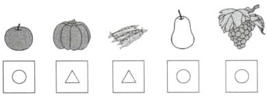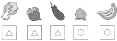 1. 先在水果的下面画“○”,在蔬菜的下面画“△”,再填一填。
