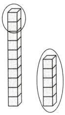 15 - 8 = 5 + ____ 15 - 7 = 5 + ____
