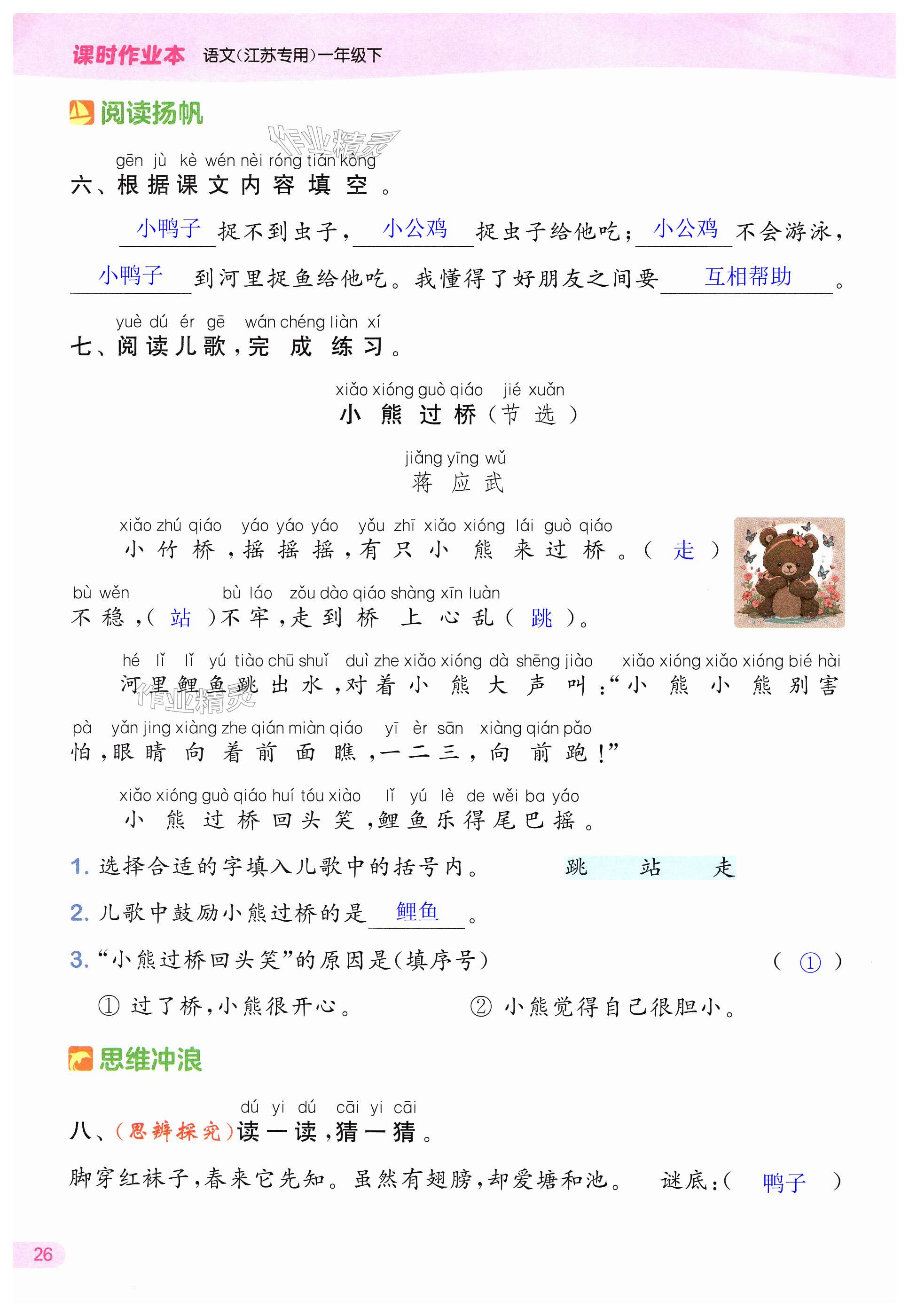 注:目前有些书本章节名称可能整理的还不是很完善,但都是按照顺序排列的,请同学们按照顺序仔细查找。练习册 2025年通城学典课时作业本一年级语文下册人教版江苏专版 答案主要是用来给同学们做完题方便对答案用的,请勿直接抄袭。